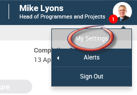 You can navigate to the My Settings page by clicking on the profile image as shown below: