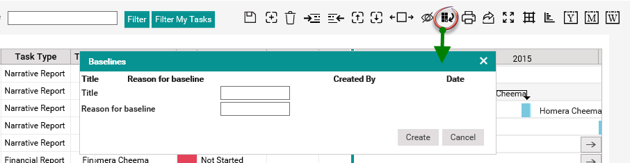 STEP 1: Click on the baseline icon and select the baseline that you need to view.